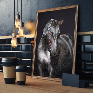 Diamond Dotz Motiv “Mittenachtshengst”, schwarzes Pferd, funkelndes Diamantbild zum Selbstgestalten ca. 42 x 53 cm groß, Malen mit Diamanten