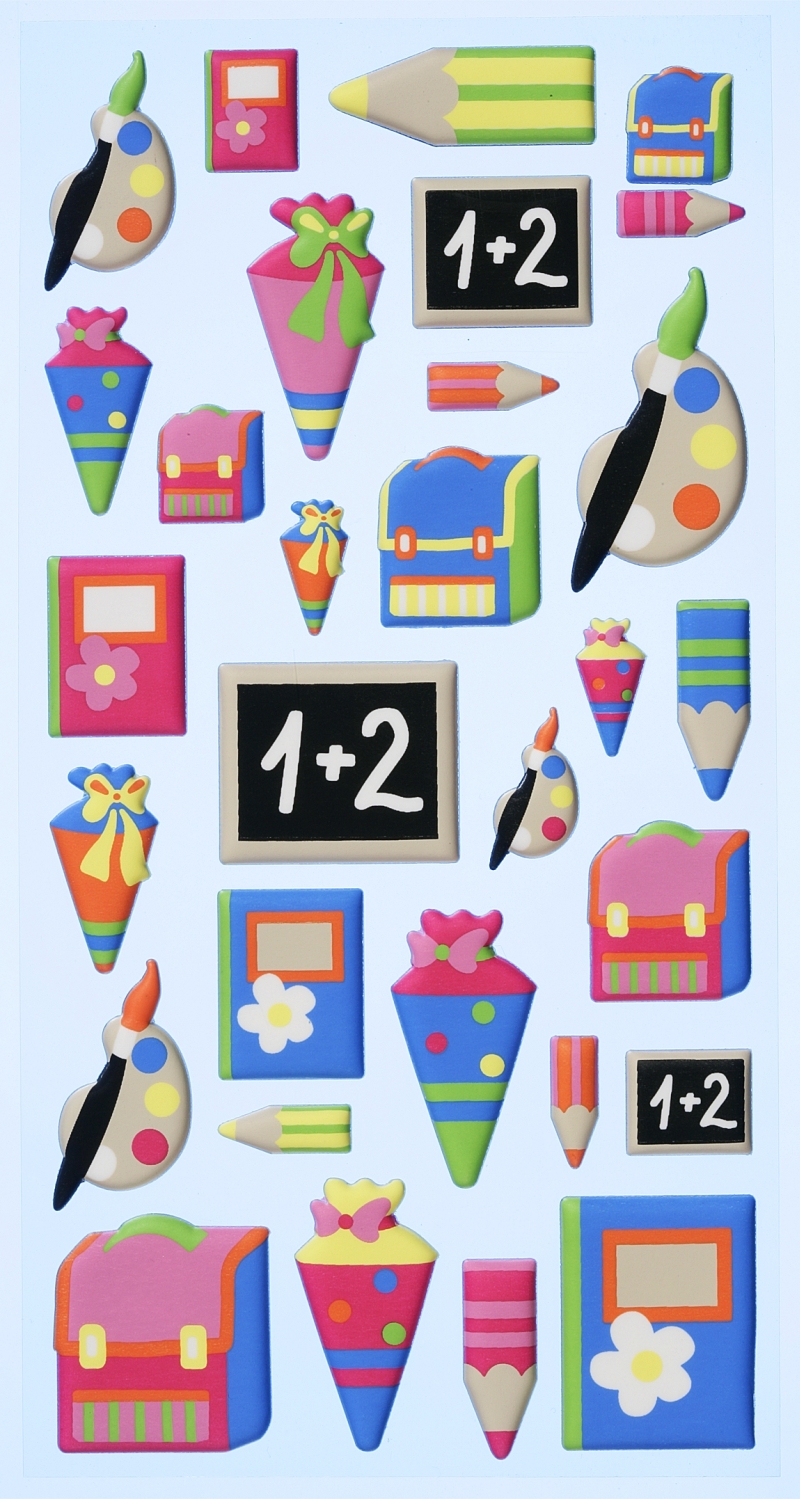 3D SOFTY Sticker-Set Schule/Einschulung, Aufkleber für Partys oder zum Dekorieren