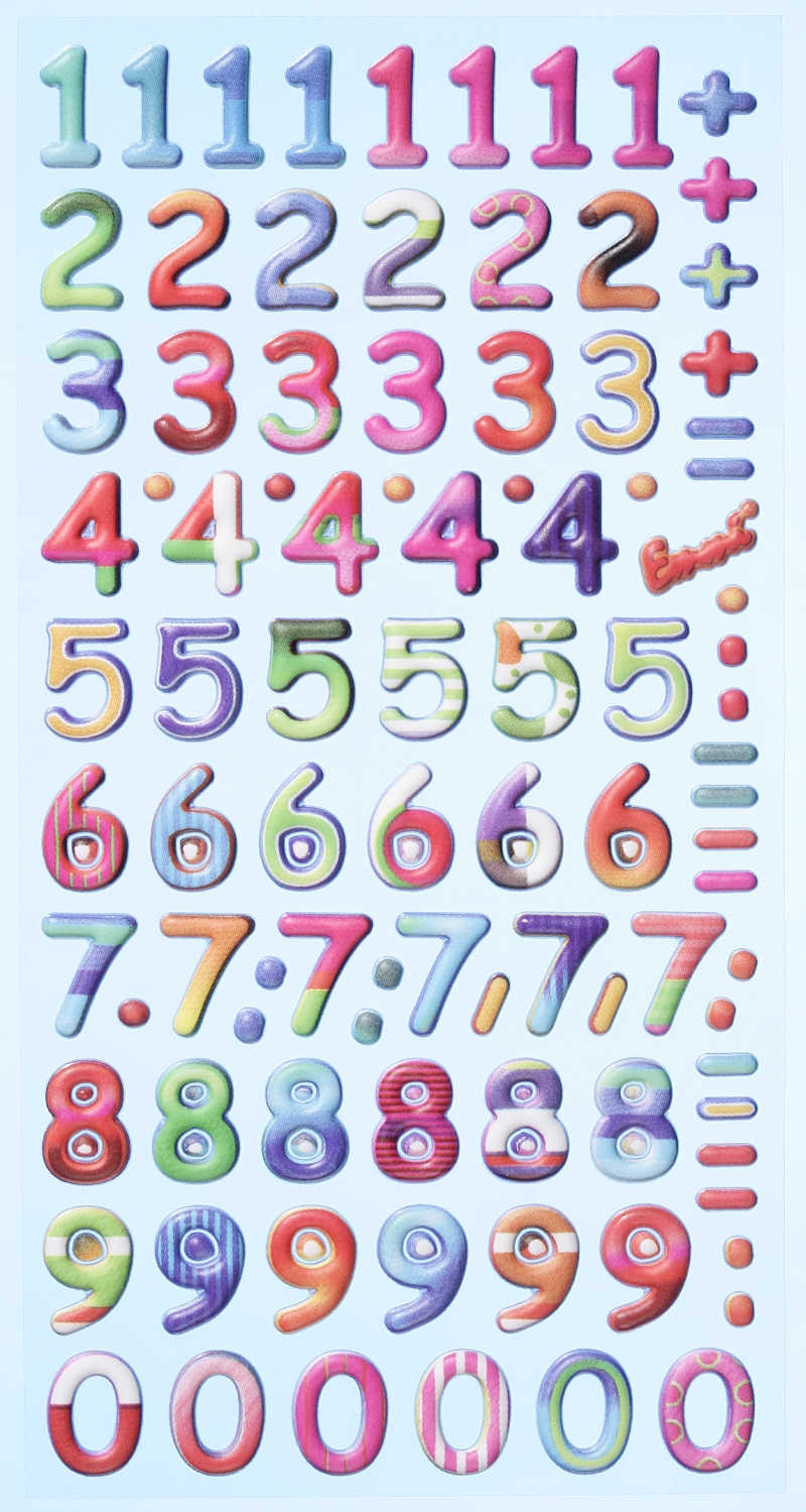 3D SOFTY Sticker-Set Zahlen und Rechenzeichen, ca. 80 Aufkleber für Partys oder zum Dekorieren