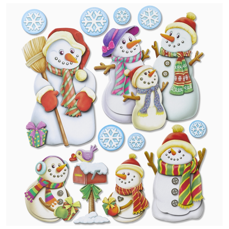 3D XXL Sticker-Set “Schneemänner”, ca. 11 attraktive Aufkleber mit Schneemännern zum Dekorieren zu Weihnachten