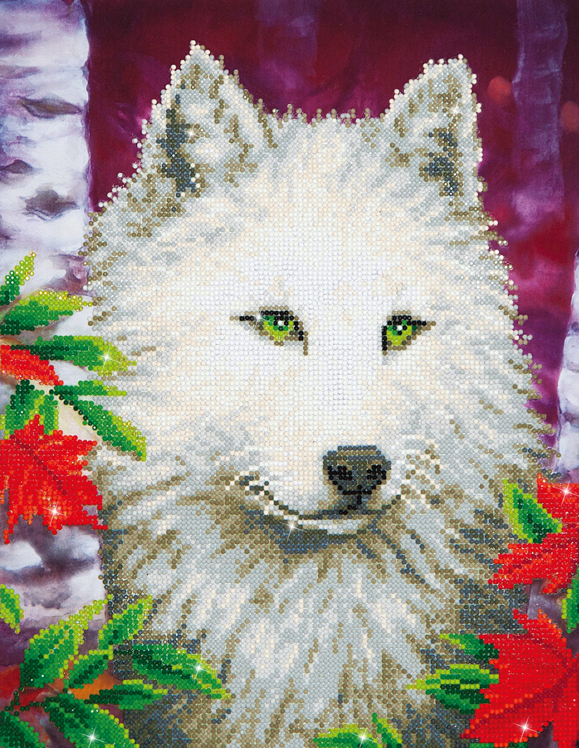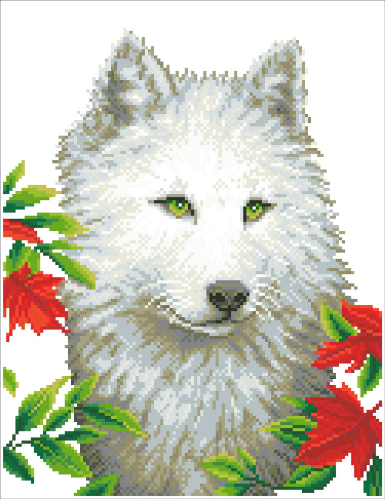 Das Motiv “Weißer Wolf” ist ca. 45,7 x 35,5 cm groß.