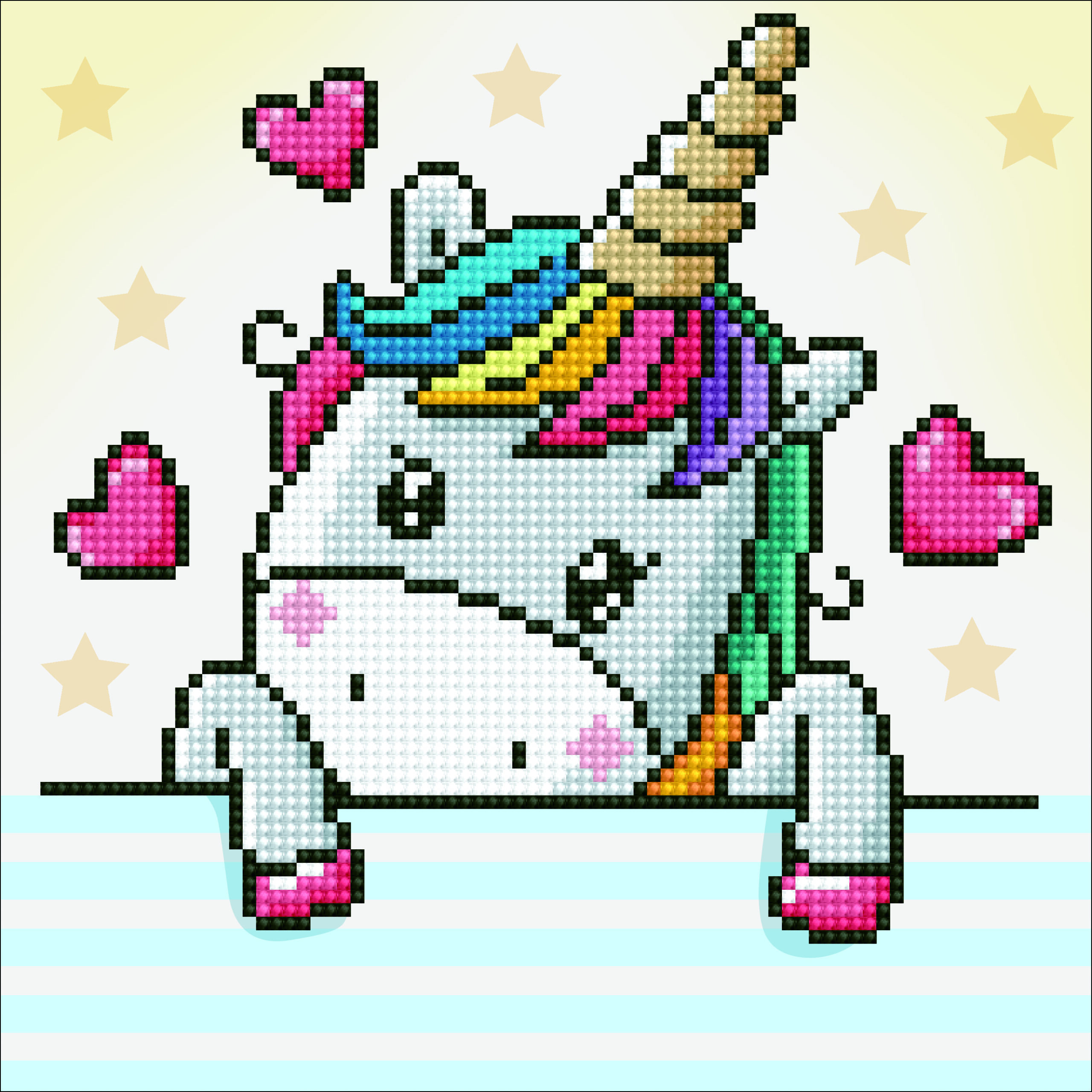 Das Motiv “Verliebtes Einhorn” ist ca. 23 x 23 cm groß.