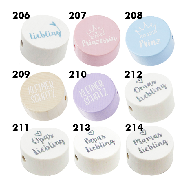 Holzscheibe mit Text für Schnullerkette, 20 x 10mm, verschiedene Ausführungen