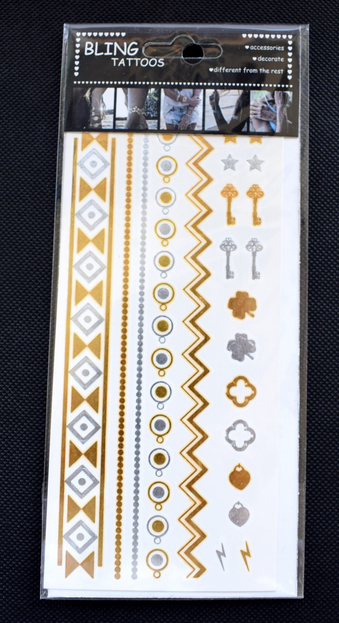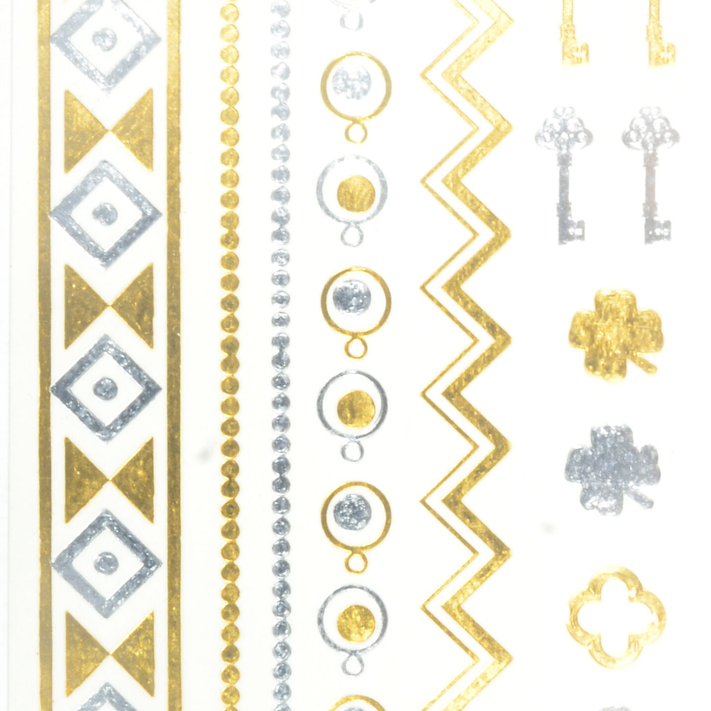 Inhalt: 1 Blatt 16x8cm mit verschiedene metallische temporäre Tätowierungen