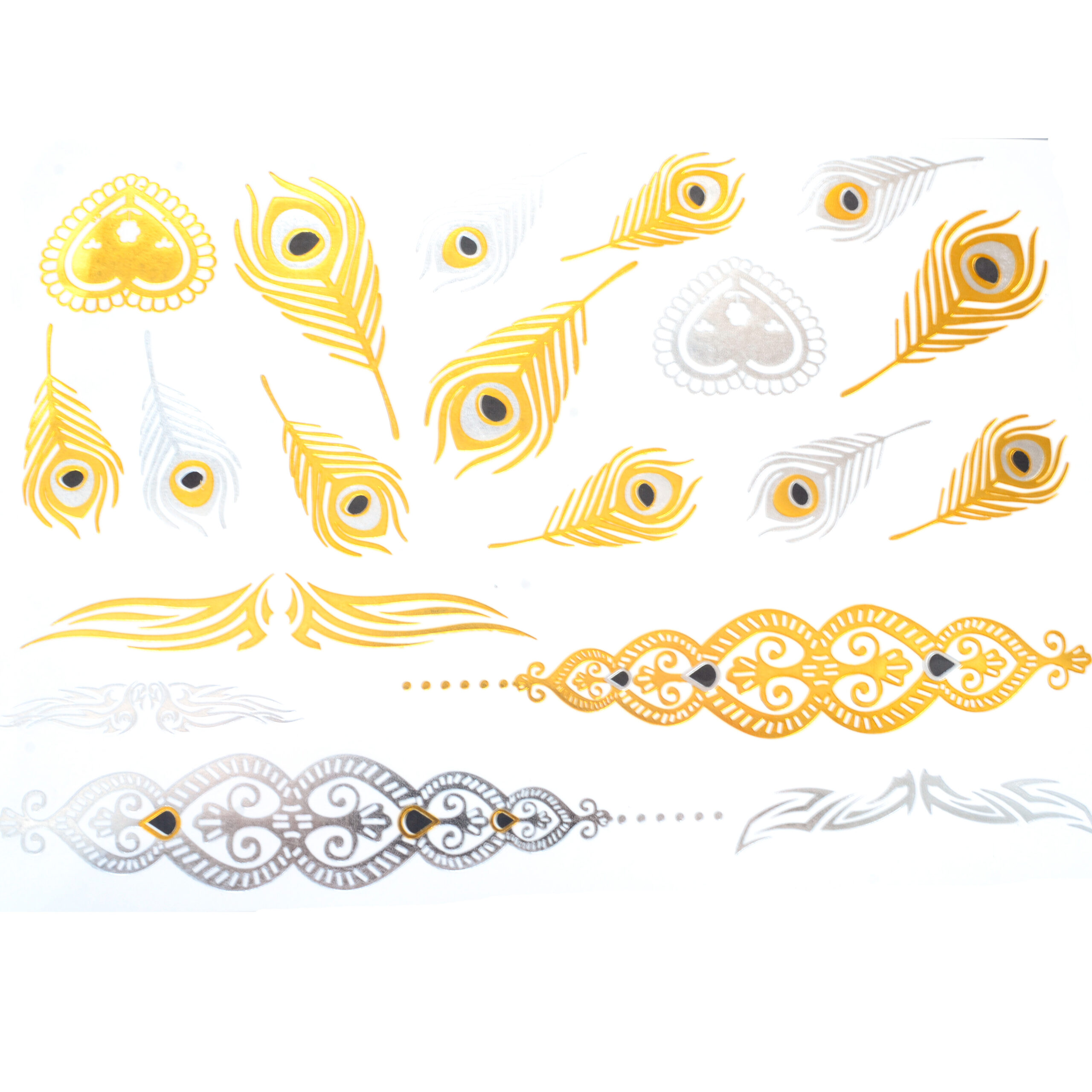 Diese metallischen temporären Tattoos sind von höchster Qualität und so 100% sicher zu verwenden. Bei der Herstellung werden nur ungiftige Materialien verwendet.