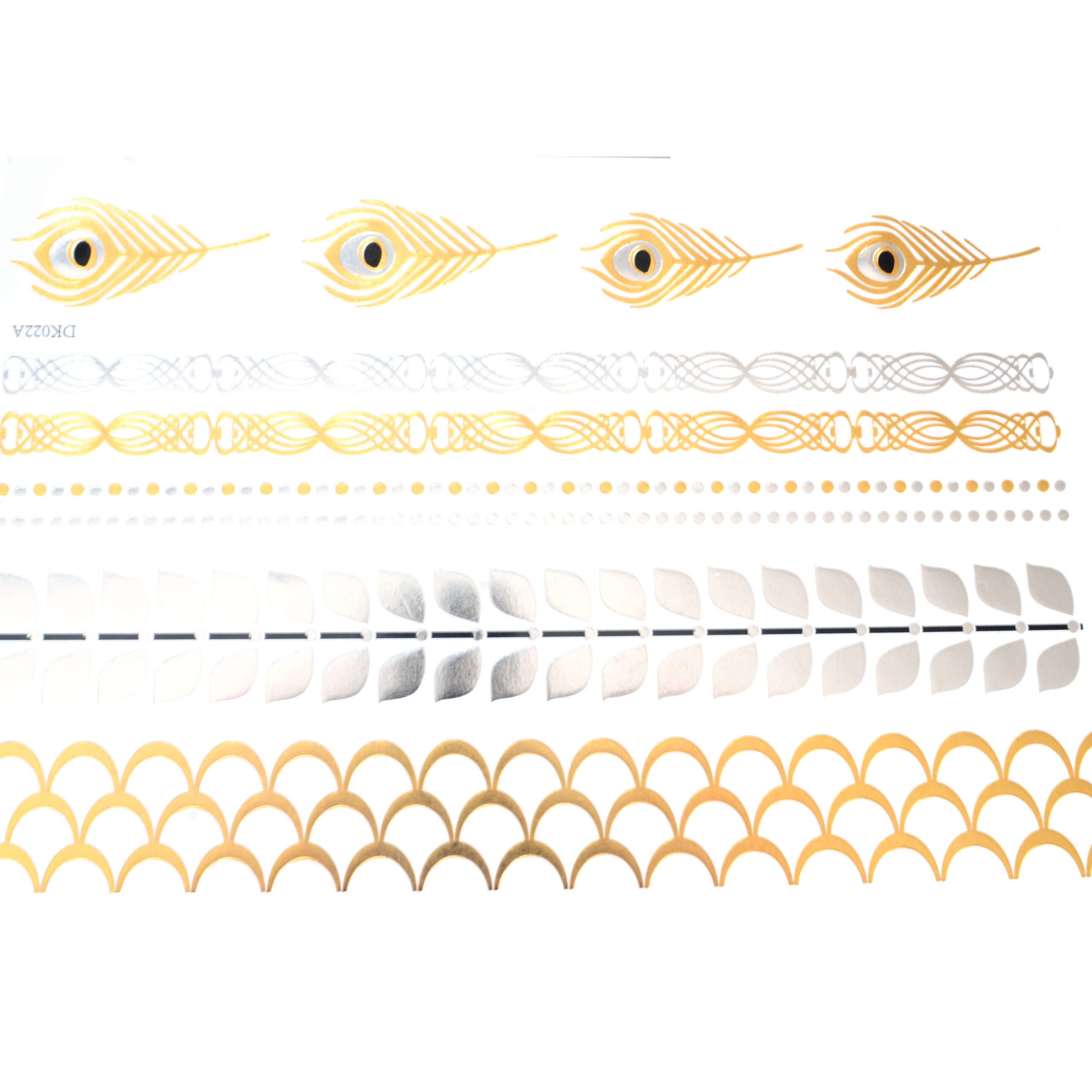 Diese metallischen temporären Tattoos sind von höchster Qualität und so 100% sicher zu verwenden. Bei der Herstellung werden nur ungiftige Materialien verwendet.