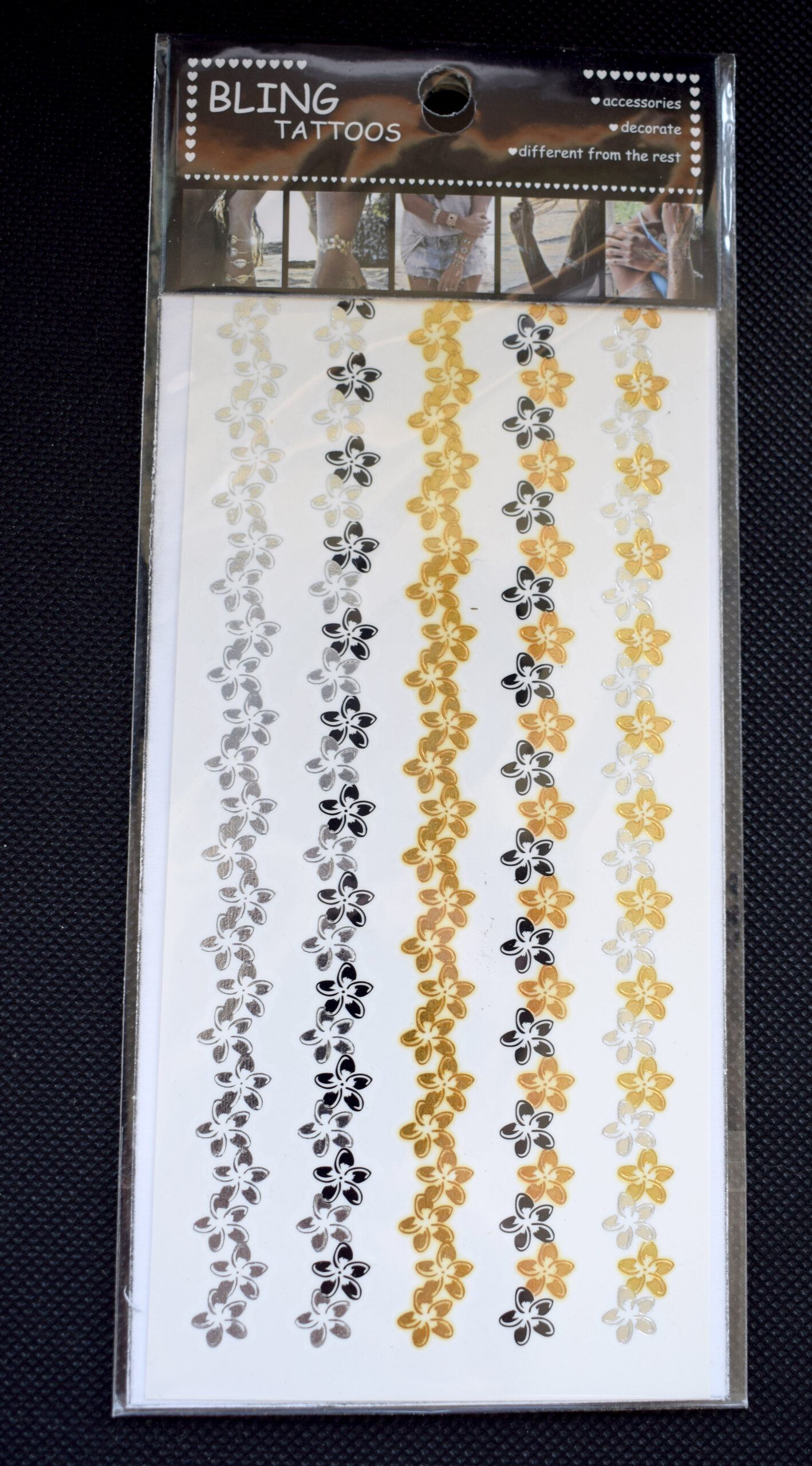 Tattoos gold-silber-schwarz 16x8cm, metallische temporäre Tätowierungen