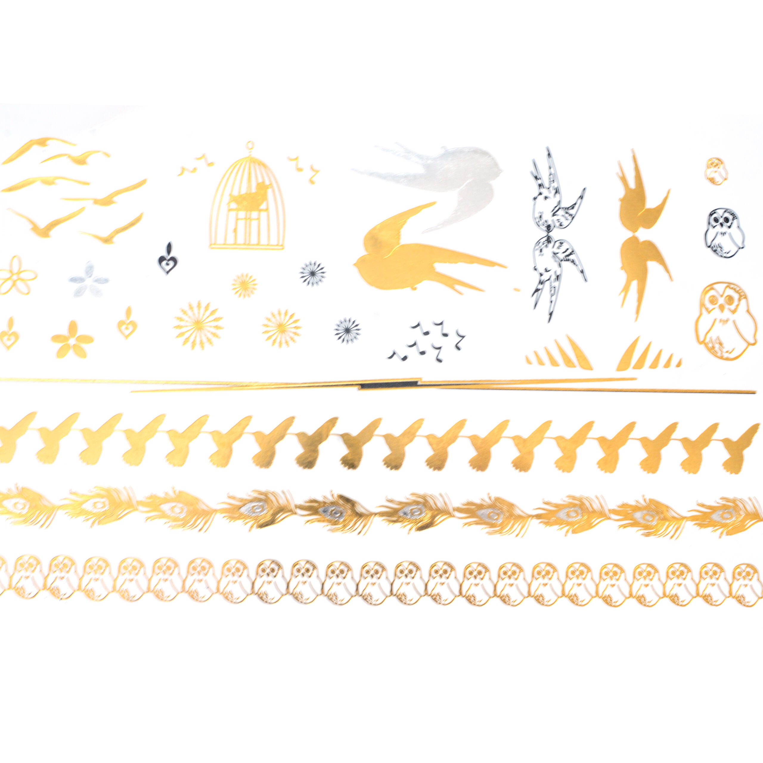 Diese metallischen temporären Tattoos sind von höchster Qualität und so 100% sicher zu verwenden. Bei der Herstellung werden nur ungiftige Materialien verwendet.